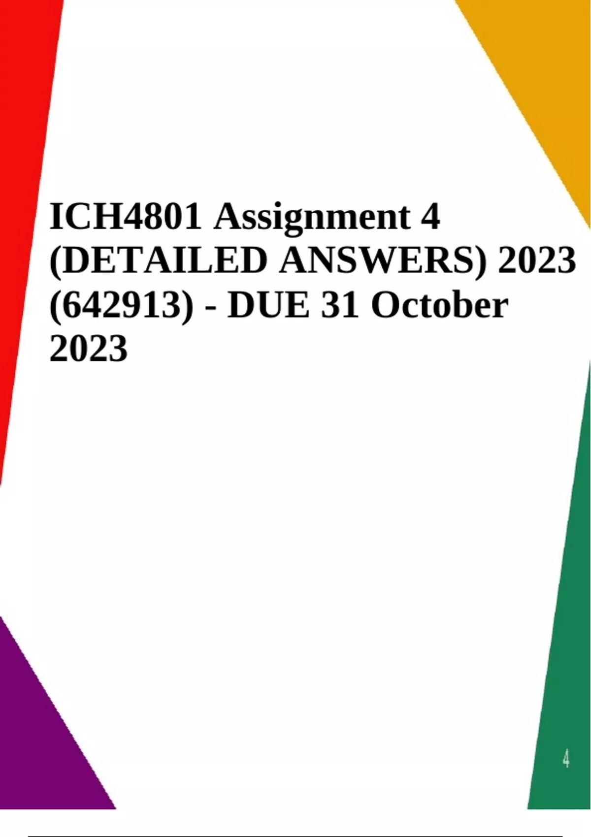ICH4801 Assignment 4 (DETAILED ANSWERS) 2023 (642913) - DUE 31 October 2023