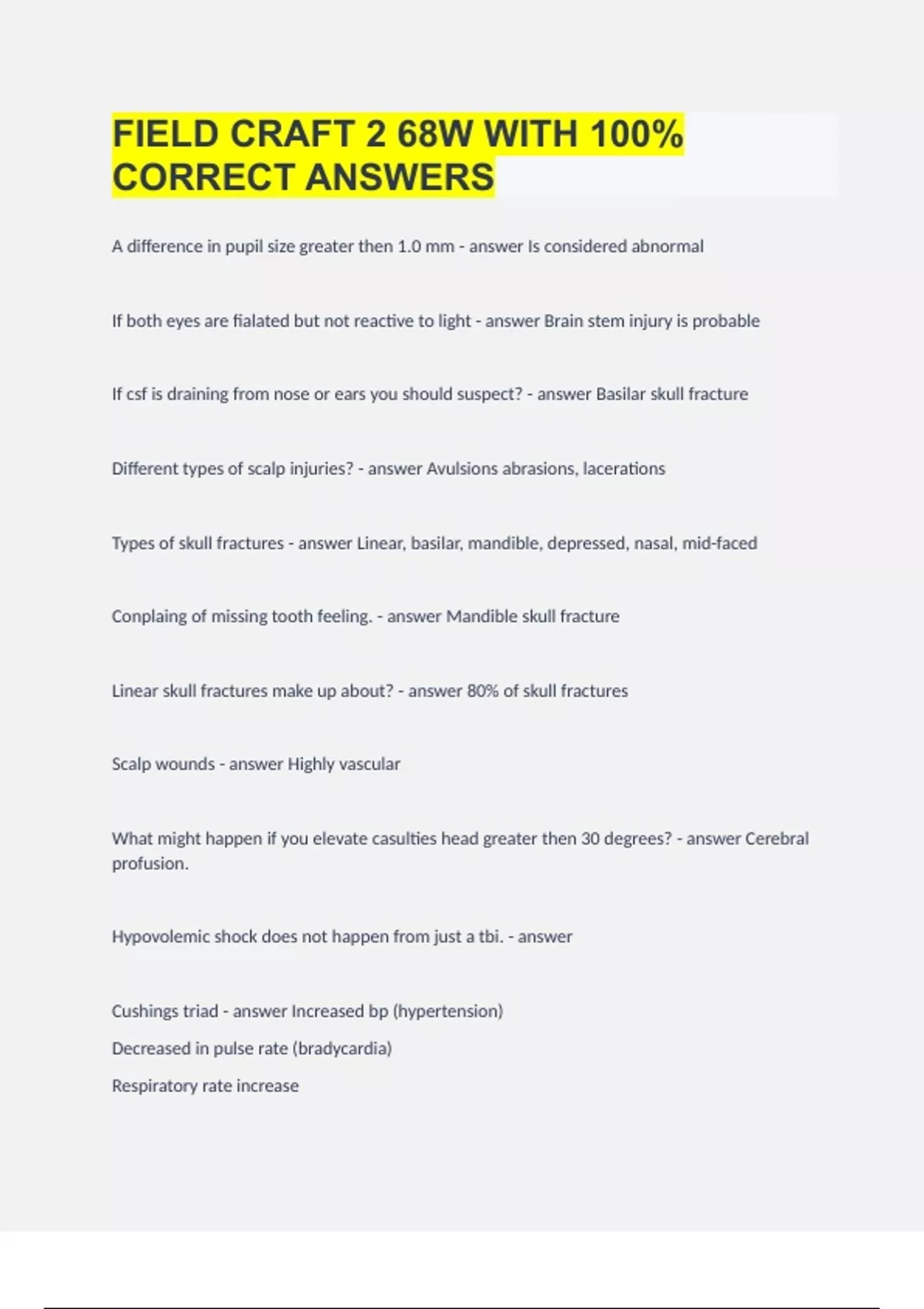 FIELD CRAFT 2 68W WITH 100% CORRECT ANSWERS
