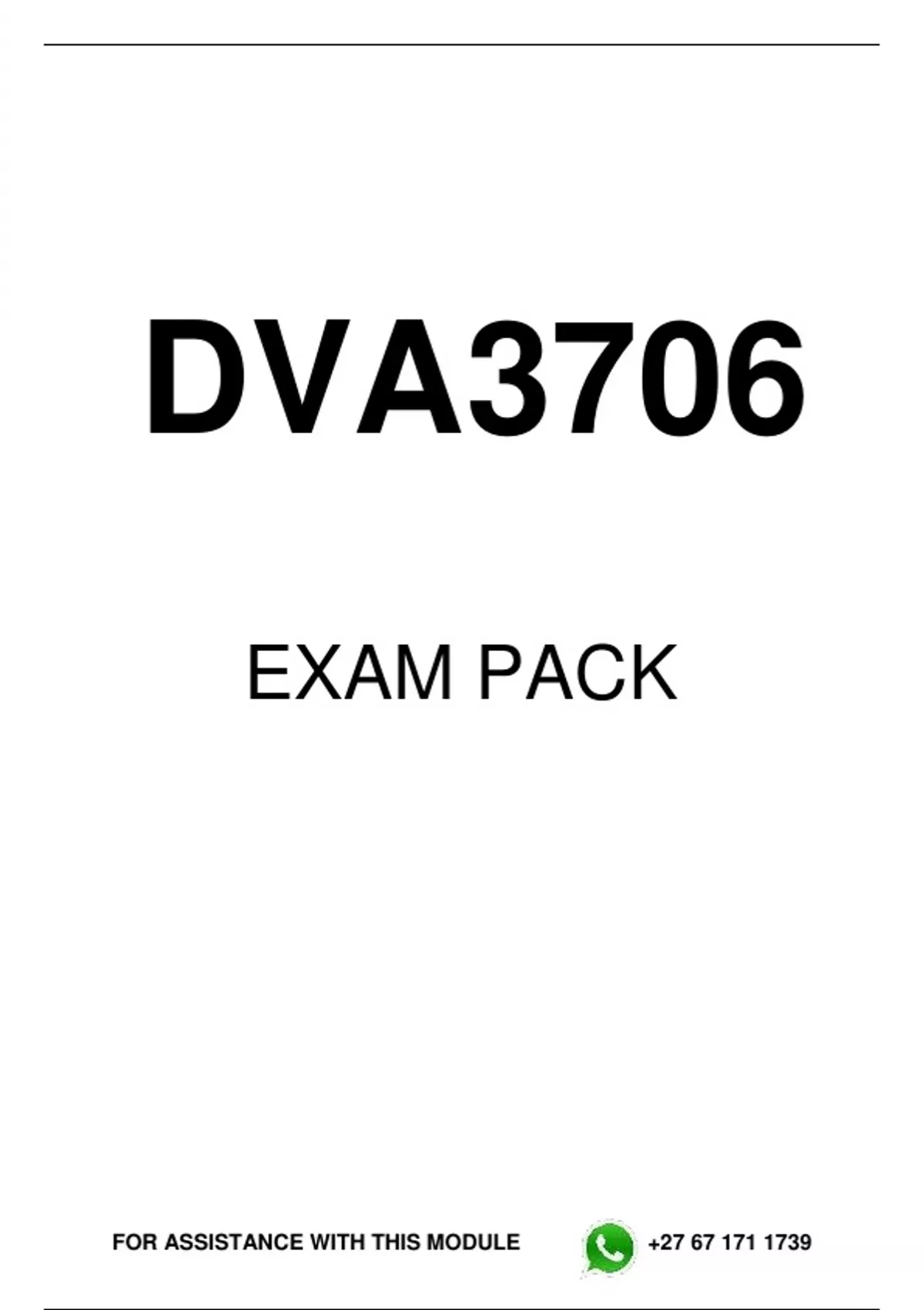 DVA3706 Latest exam pack questions and answers and summarized notes for exam preparation. Updated for 2025 exams . For assistance Whats-App.0.6.7..1.7.1..1.7.3.9 . All the best on your exams!!