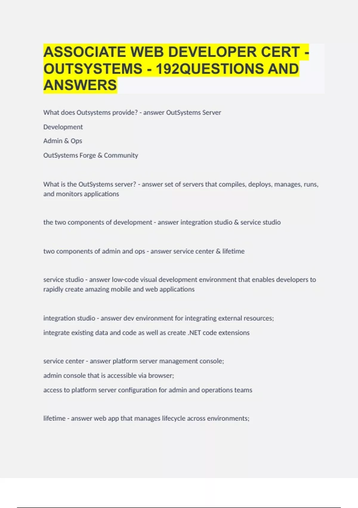 ASSOCIATE WEB DEVELOPER CERT - OUTSYSTEMS - 192QUESTIONS AND ANSWERS|GUARANTEED SUCCESS
