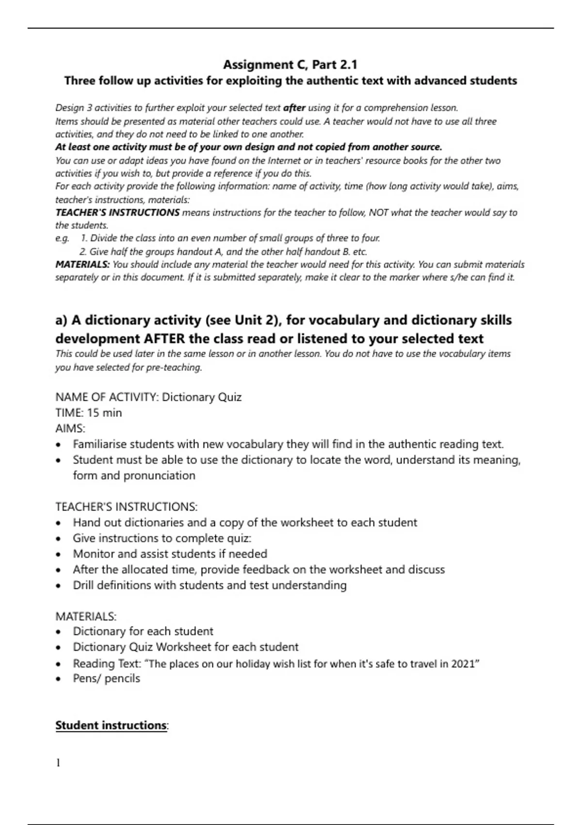 Summary Assignment C. Part 3 Activities. TEFL Level 5. Merit Standard