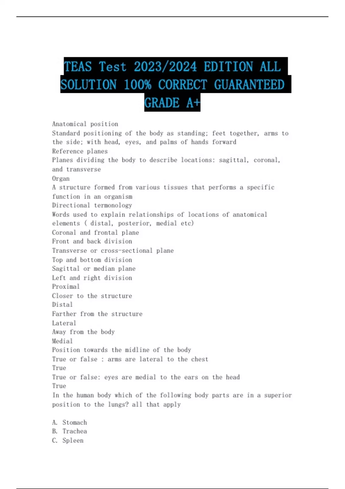 TEAS Test 2023/2024 EDITION ALL SOLUTION 100% CORRECT GUARANTEED GRADE A+