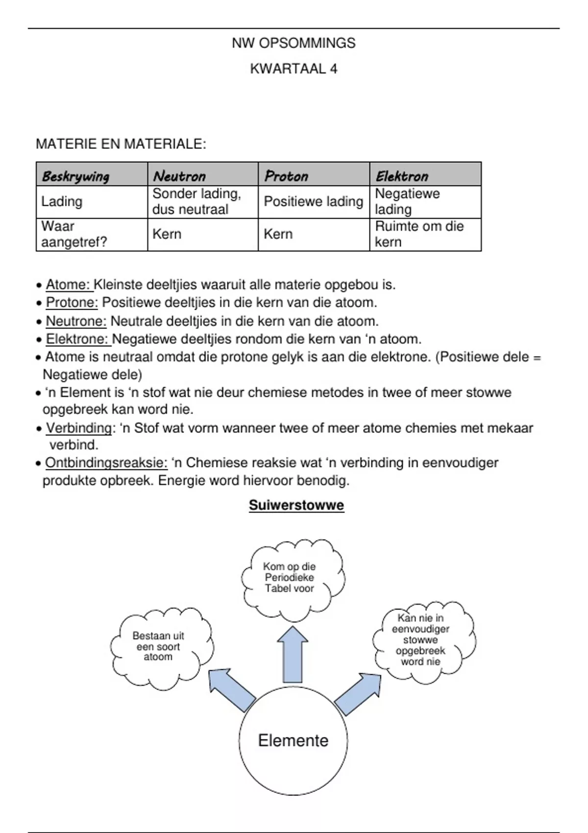  Atome: Kleinste deeltjies waaruit alle materie opgebou is.