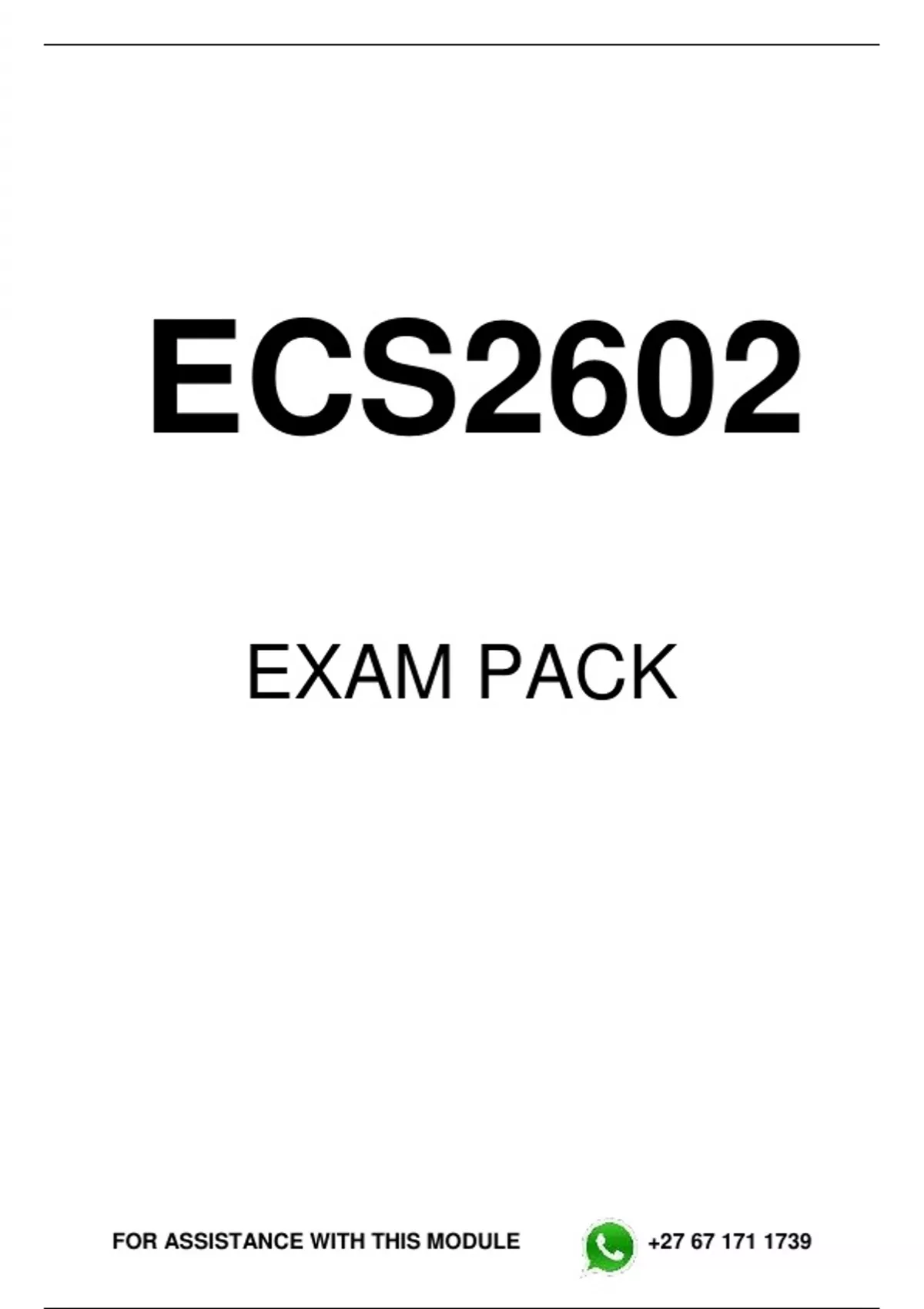 ECS2602 Latest exam pack questions and answers and summarized notes for exam preparation. Updated for 2025 exams . For assistance Whats-App.0.6.7..1.7.1..1.7.3.9 . All the best on your exams!!