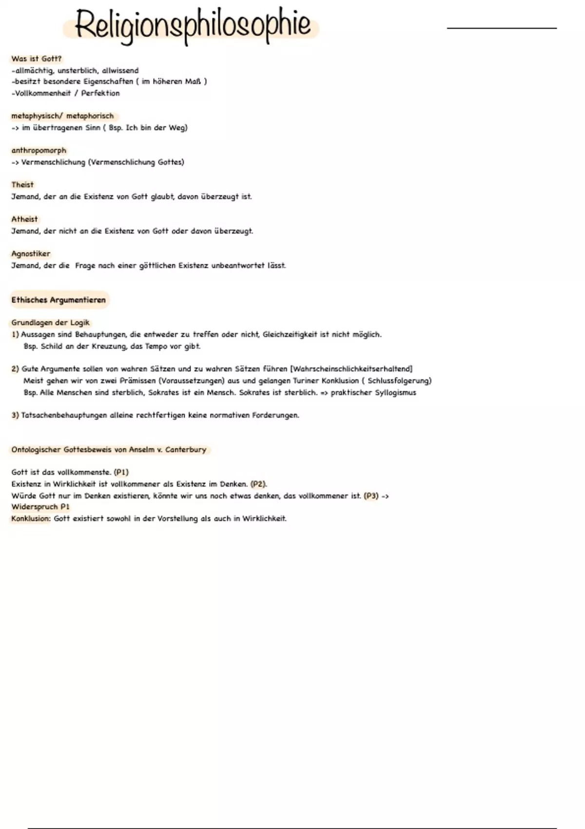 Ontologischer Gottesbeweis von Anselm v. Canterbury