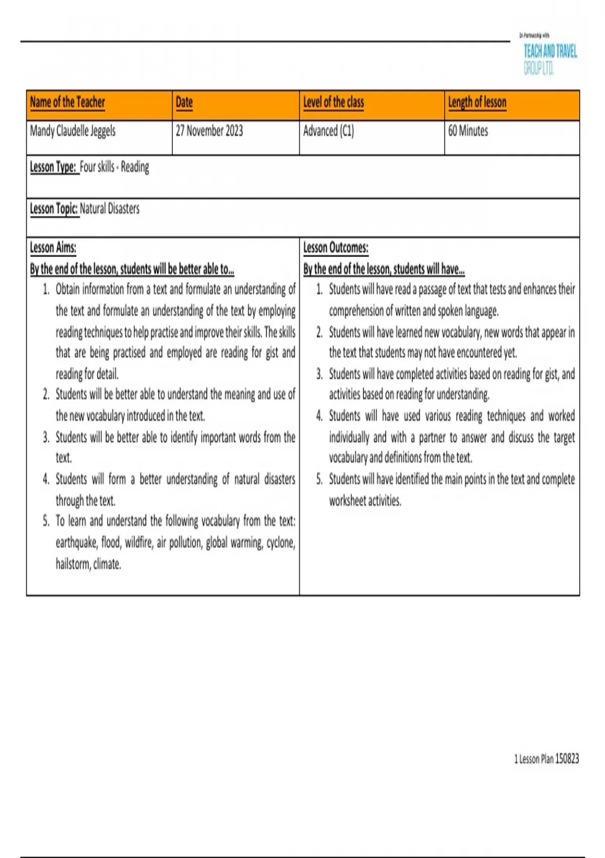 Mandy Claudelle Jeggels 27 November 2023 Advanced (C1) 60 Minutes