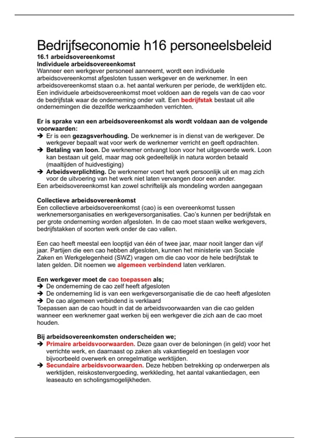 Samenvatting bedrijfseconomie 4-5 havo h16 personeelsbeleid