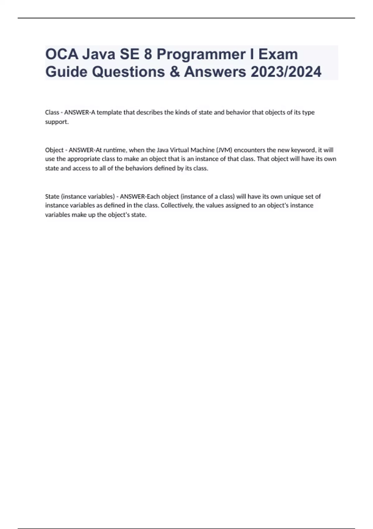 OCA Java SE 8 Programmer I Exam Guide Questions & Answers 2023/2024
