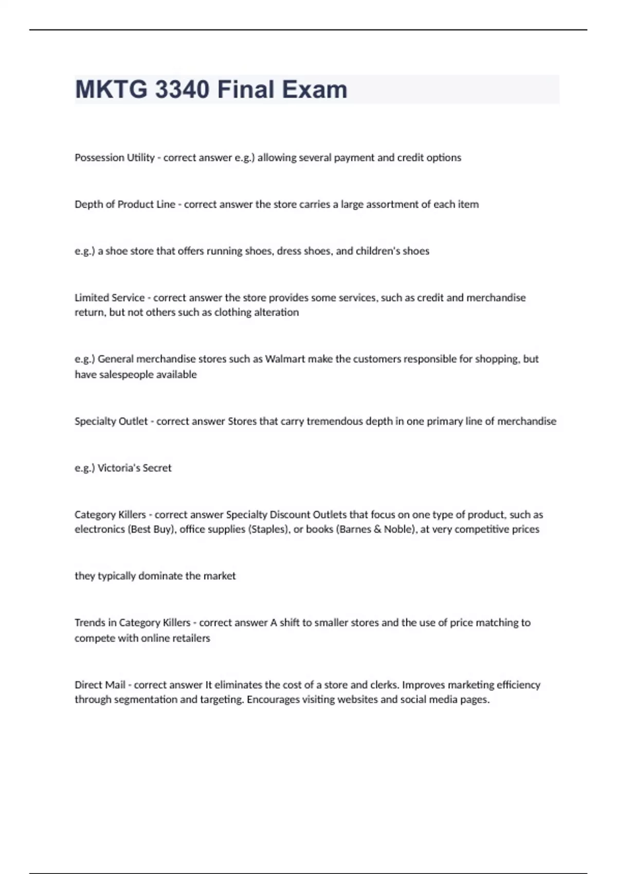MKTG 3340 Final Exam with complete solutions 2023/2024 latest update