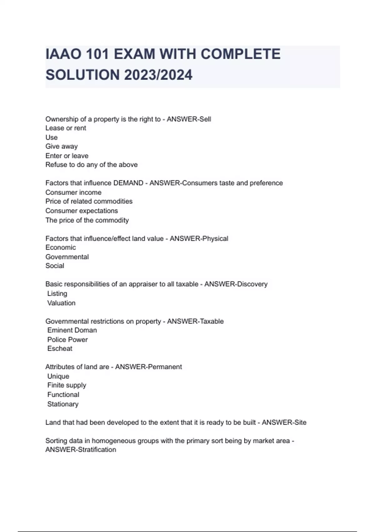 - IAAO 101 EAM WITH COMPLETE SOLUTION 2023/2024