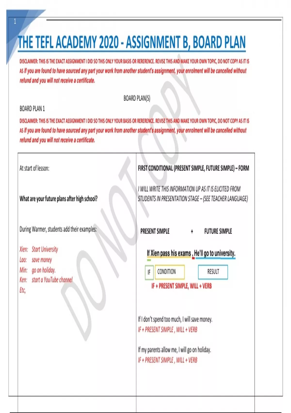 THE TEFL ACADEMY 2020 - ASSIGNMENT B, BOARD PLAN
