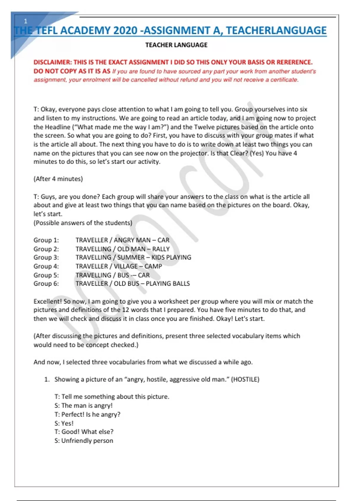 THE TEFL ACADEMY 2020 - ASSIGNMENT A, TEACHER LANGUAGE.
