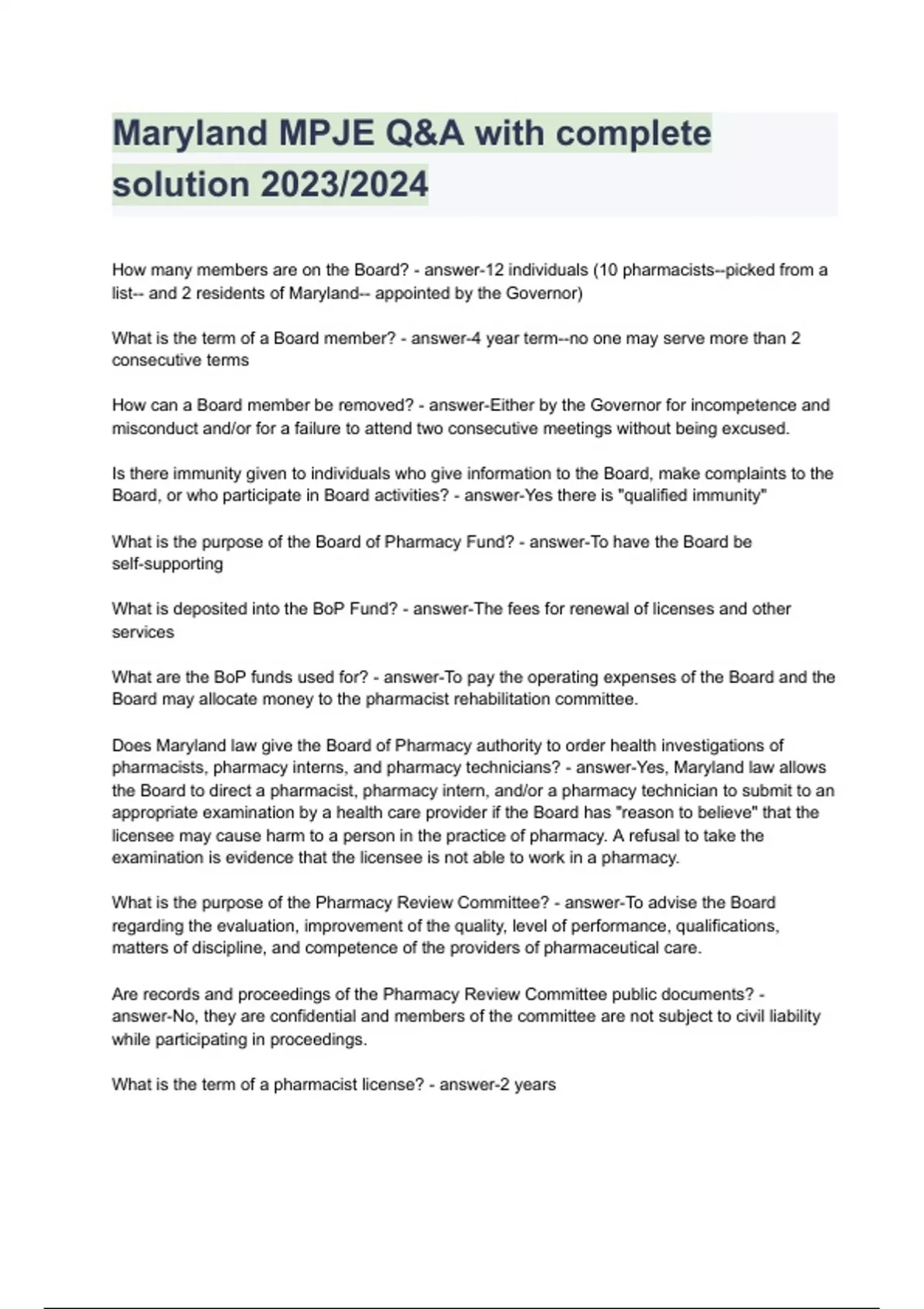 - Maryland MPJE Q&A with complete solution 2023/2024