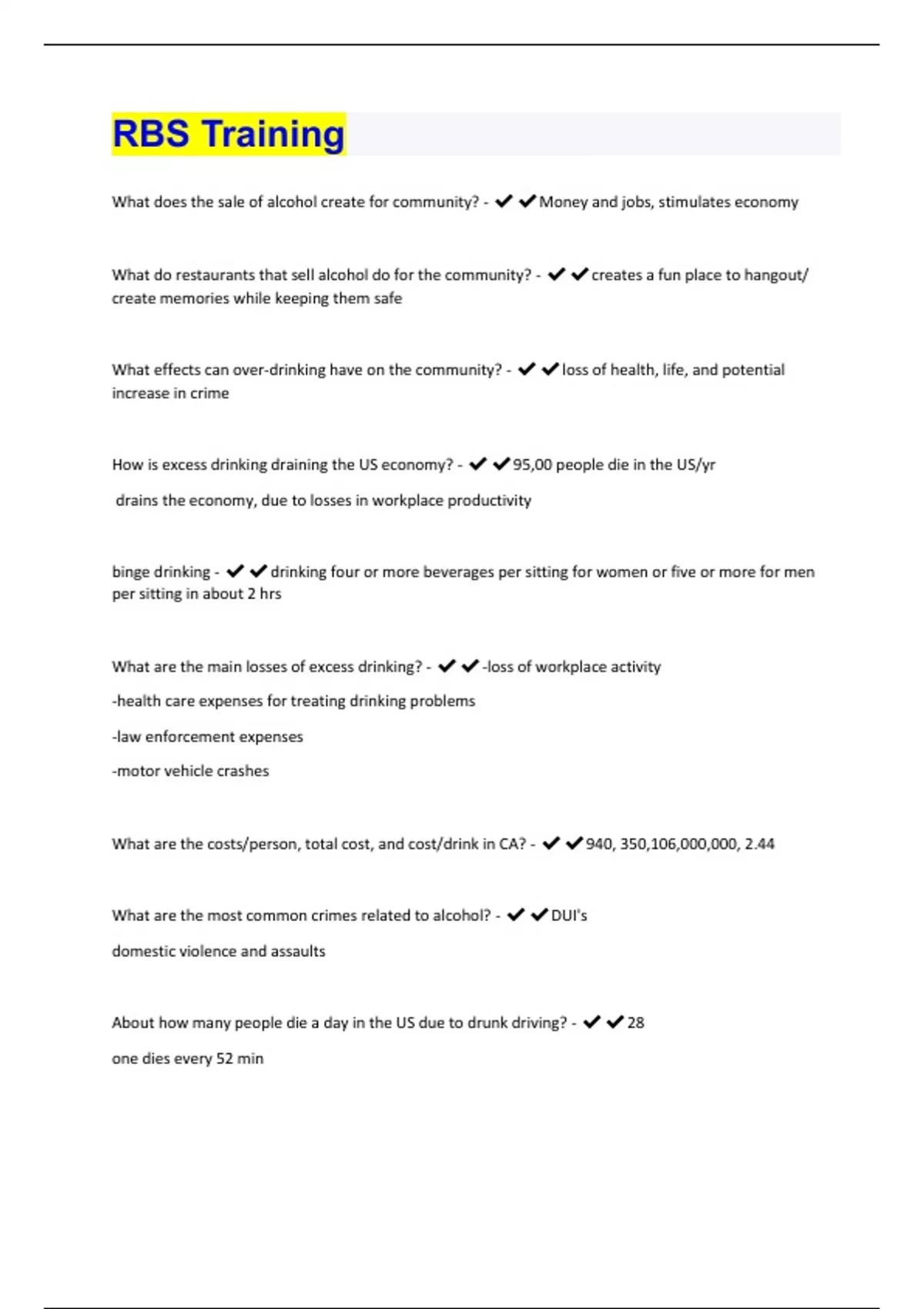 RBS Training Exam Questions With Complete Solutions.