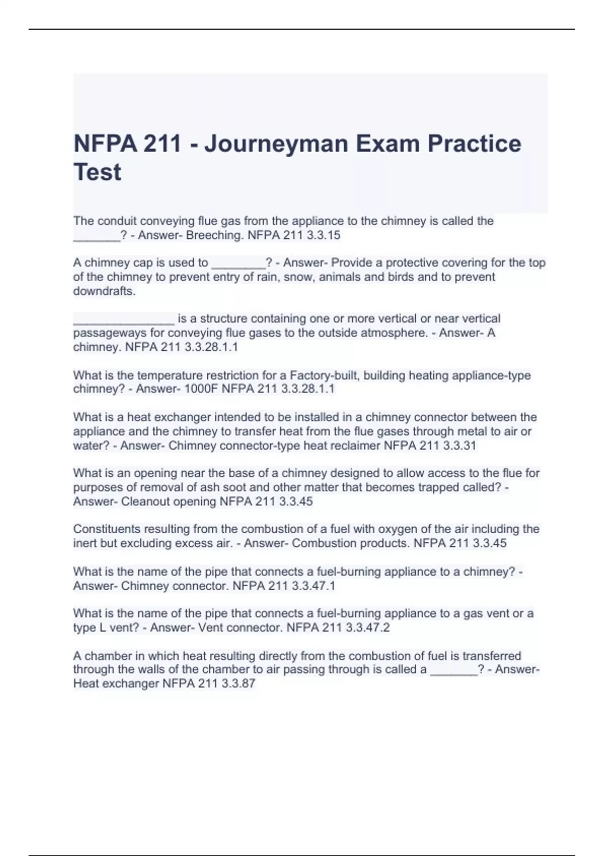 NFPA 211 - Journeyman Exam Practice Test-solved