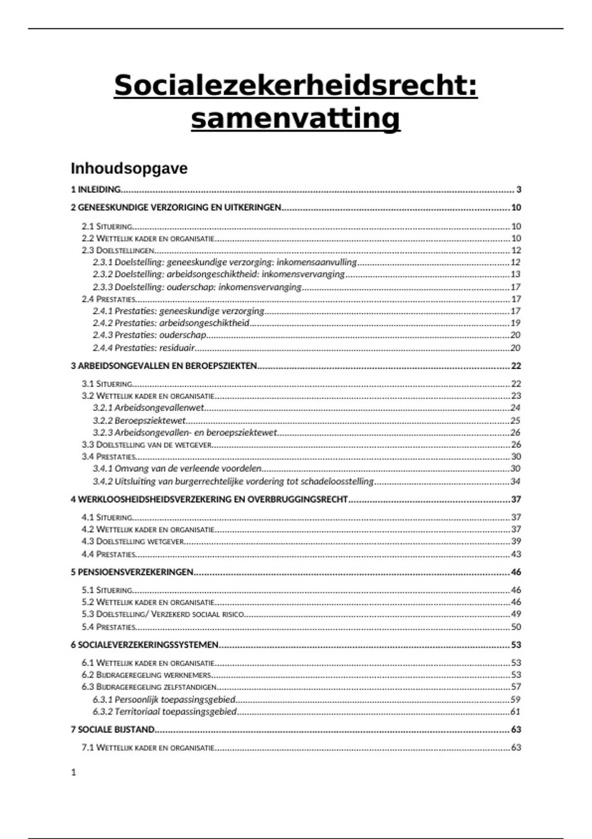 Dit document betreft een samenvatting van het opleidingsonderdeel 'Socialezekerheidsrecht' met als professor Van Limberghen. Het document bevat de slides van de les, de lesnotities alsook de belangrijkste informatie uit cursus deel 1 en 2).