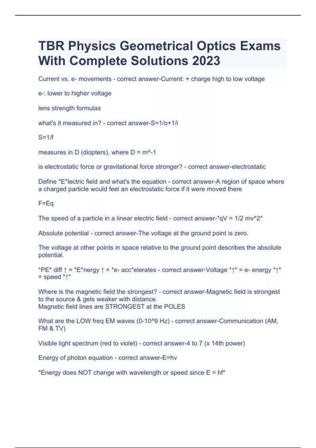 TBR Physics Geometrical Optics Exams With Complete Solutions 2023