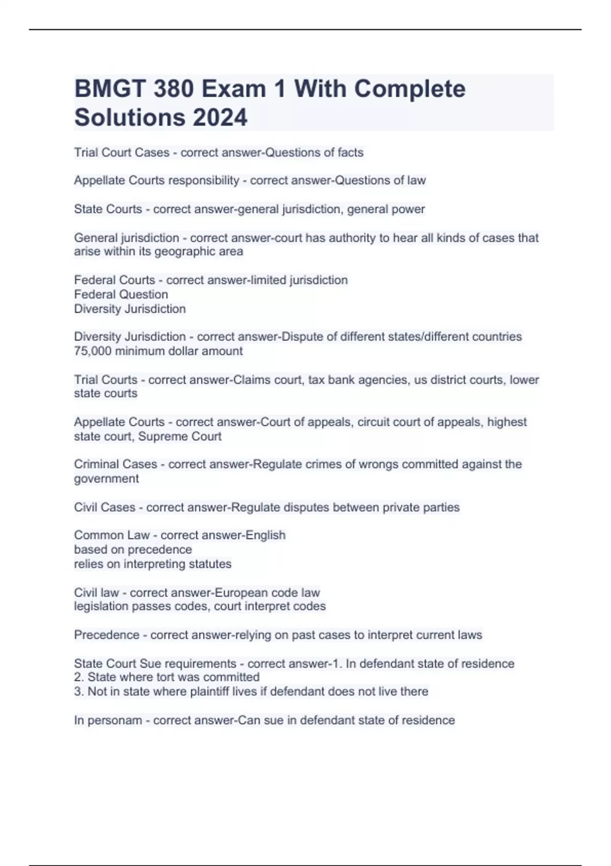 BMGT 380 Exam 1 With Complete Solutions 2024