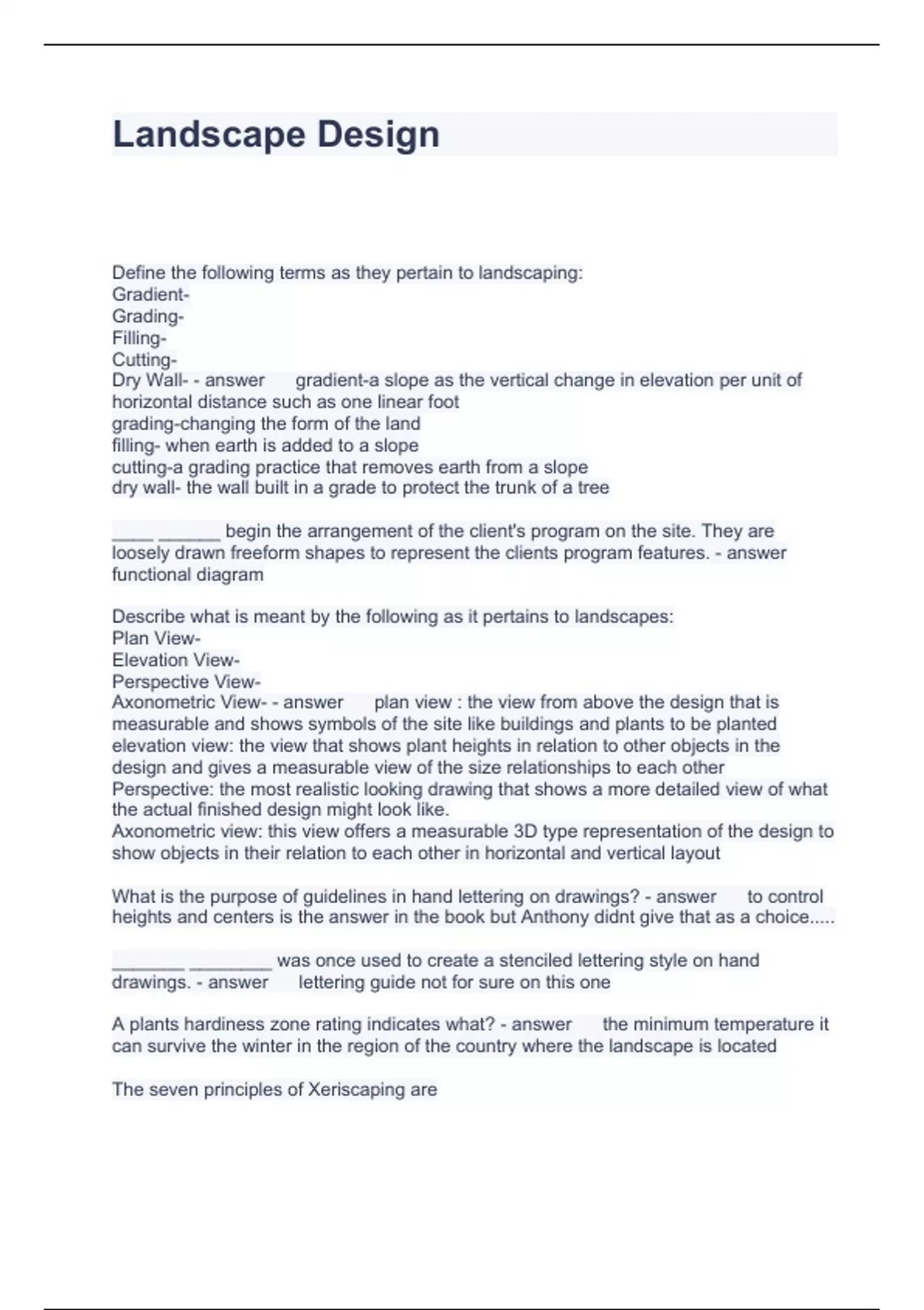 Landscape Design Questions with correct Answers, A+ Content
