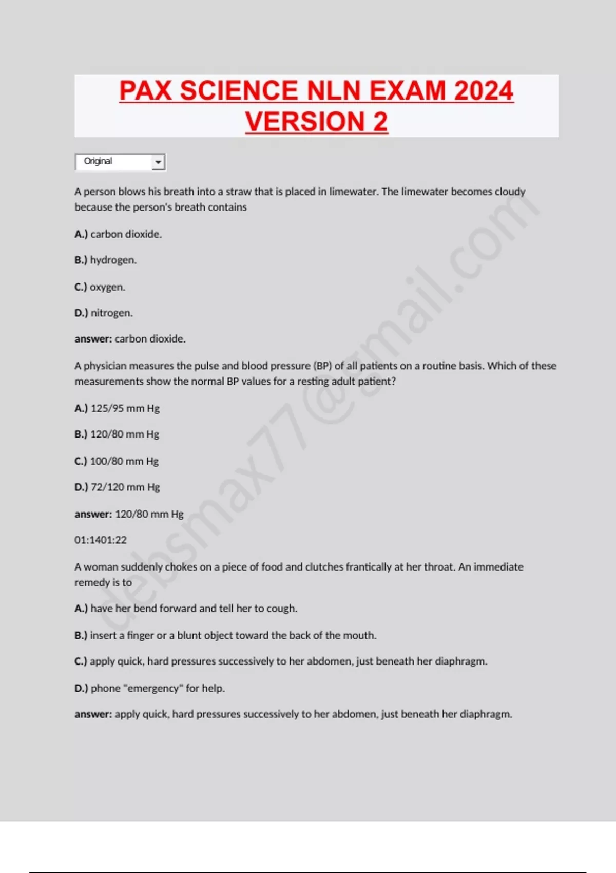 PAX SCIENCE NLN EXAM 2024 VERSION 2