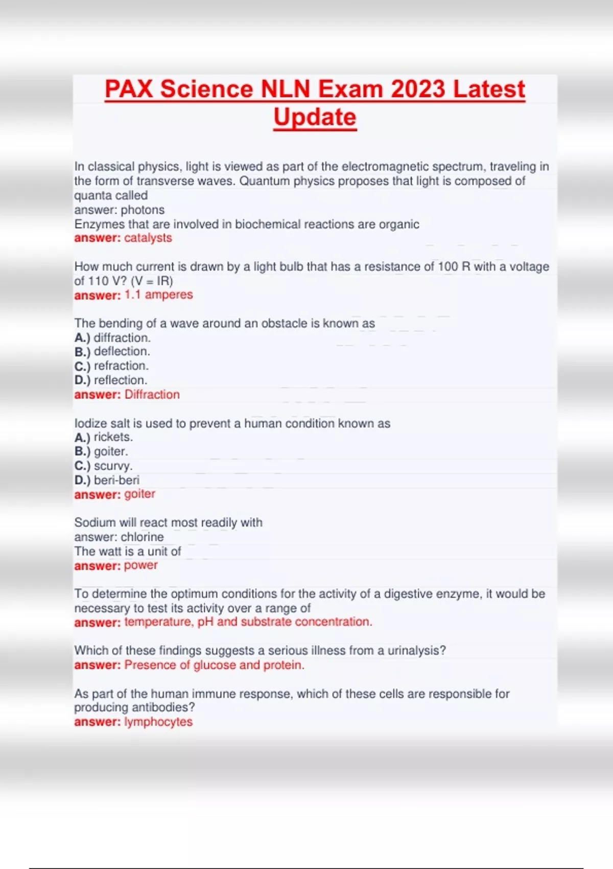 PAX Science NLN Exam 2023 Latest Update