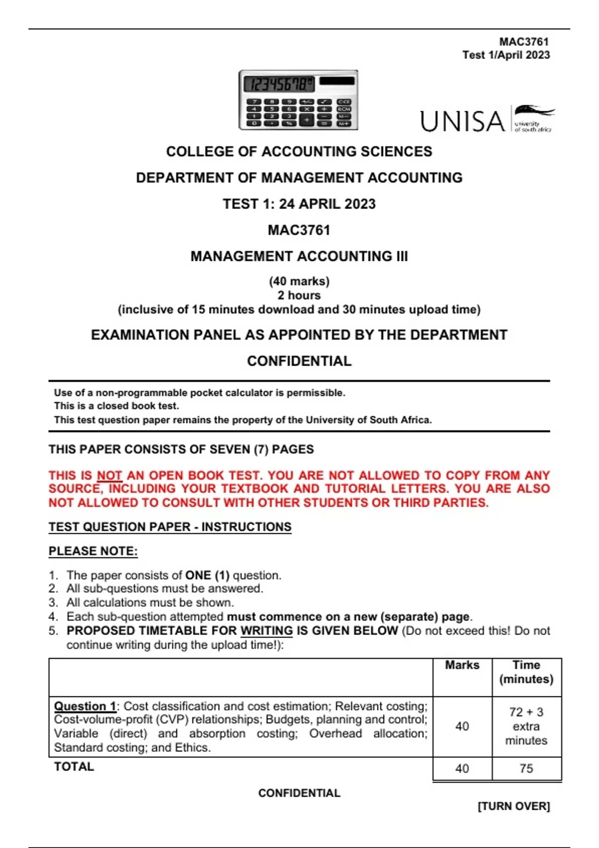 We would again like to highlight the following important aspects of Test 1 for MAC3761 that were