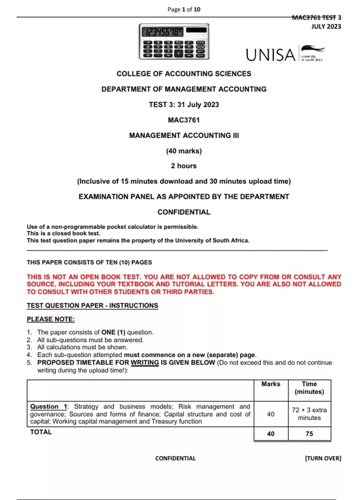 SOURCE, INCLUDING YOUR TEXTBOOK AND TUTORIAL LETTERS. YOU ARE ALSO NOT ALLOWED
