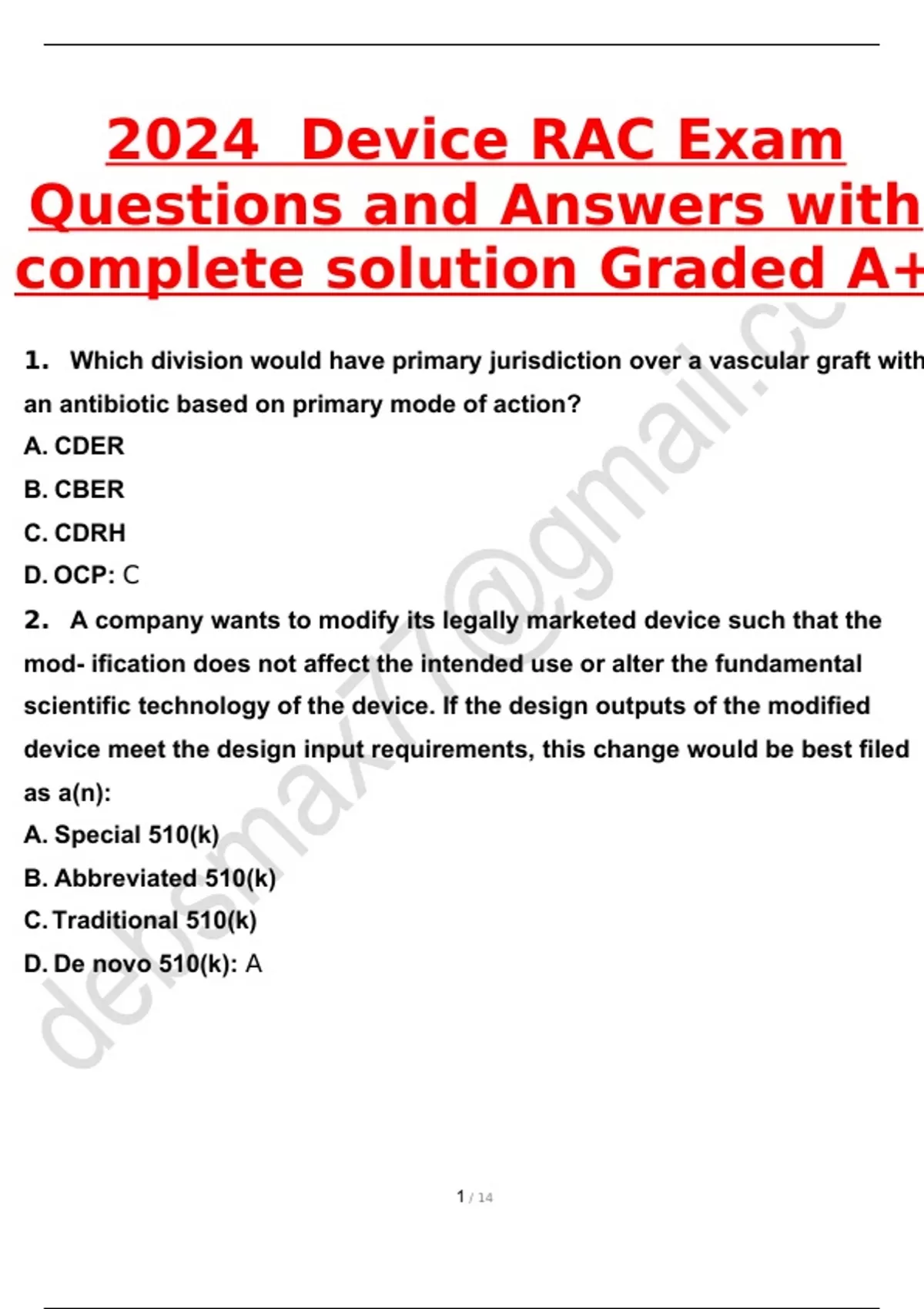 2024 Device RAC Exam Questions and Answers with complete solution Graded A+