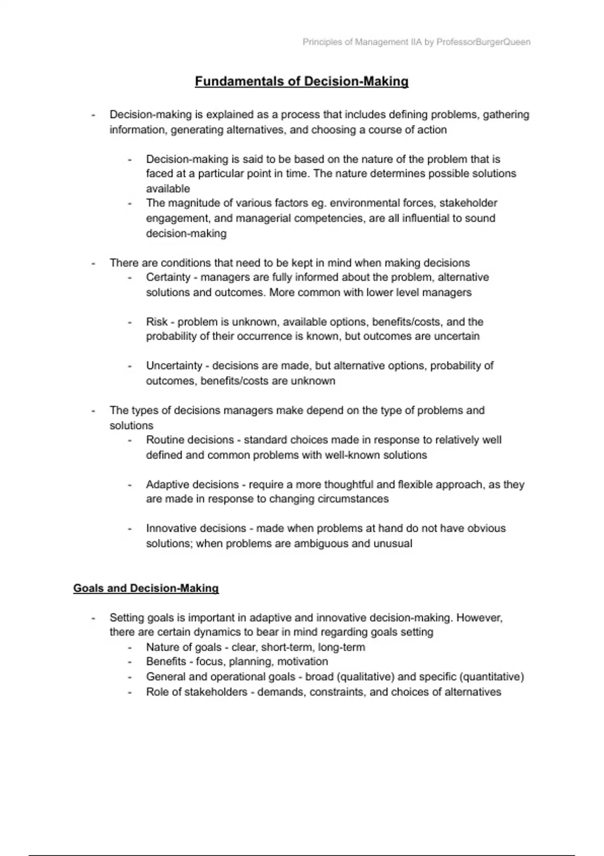 Summary Principles of Management IIA Chpt.7 - Fundamentals of Decision-Making