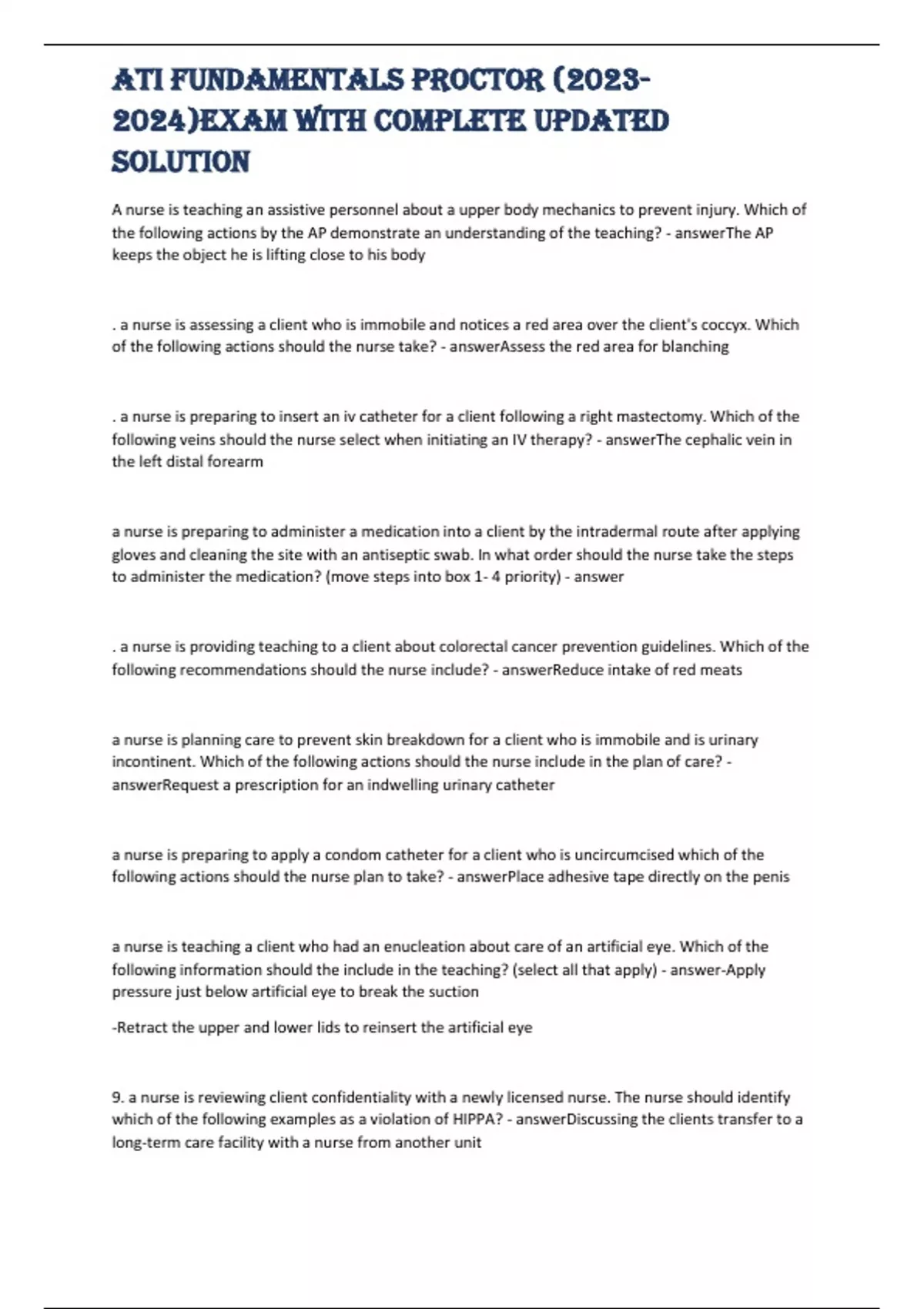 ATI FUNDAMENTALS PROCTOR ()EXAM WITH COMPLETE UPDATED SOLUTION