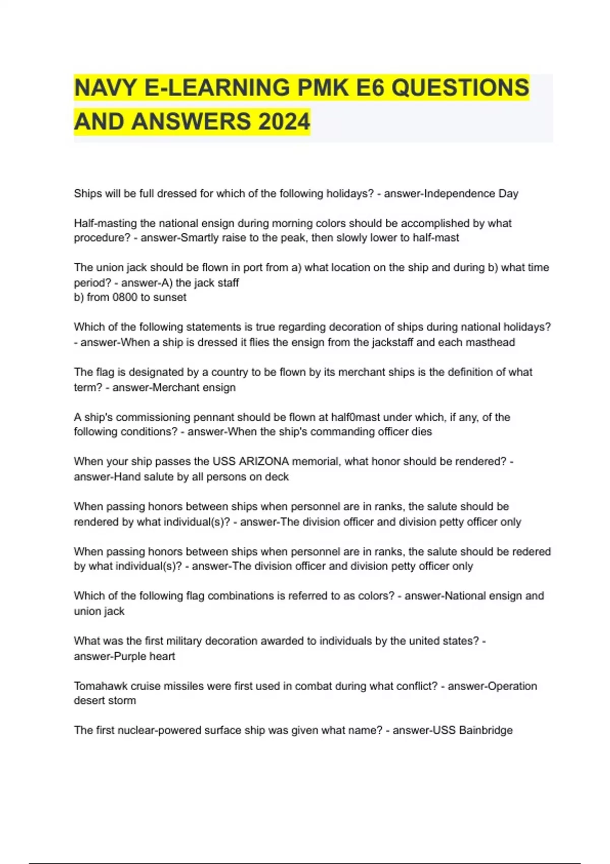 NAVY E-LEARNING PMK E6 QUESTIONS AND ANSWERS 2024