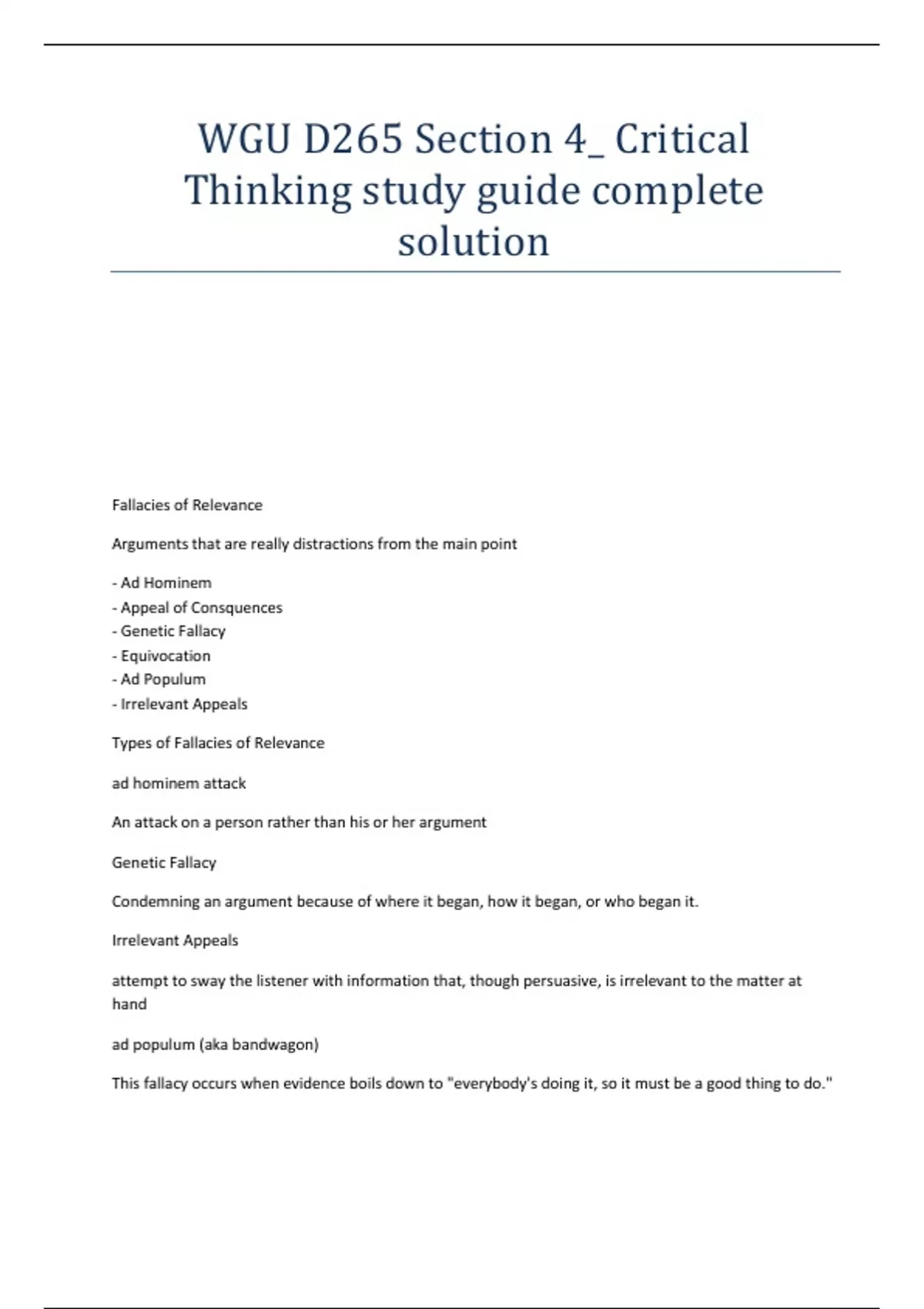WGU D265 Section 4_ Critical Thinking study guide complete solution