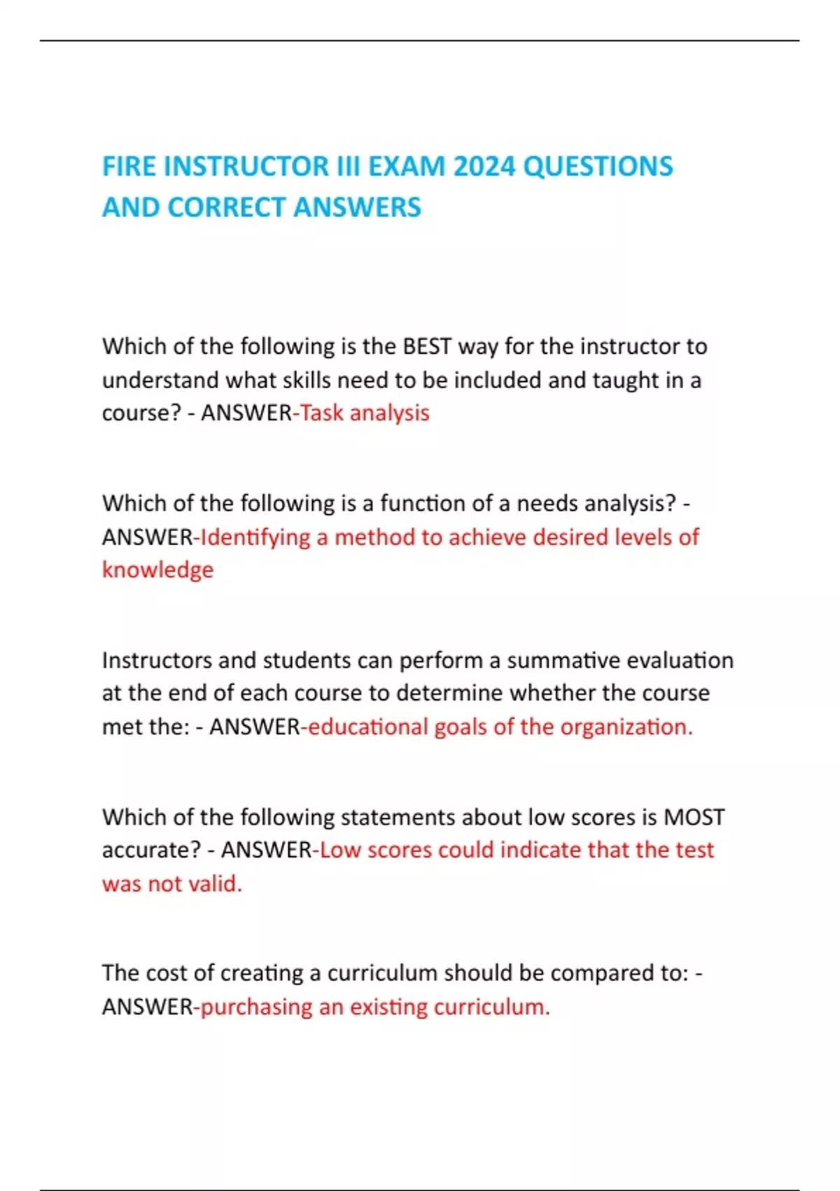 FIRE INSTRUCTOR III EXAM 2024 QUESTIONS AND CORRECT ANSWERS