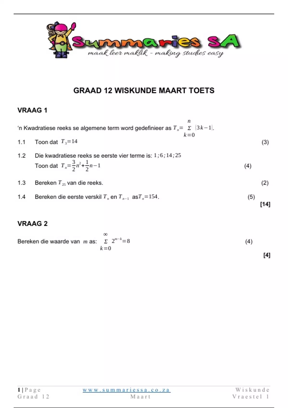 1.2 Die kwadratiese reeks se eerste vier terme is: 1 ;6 ; 14 ; 25