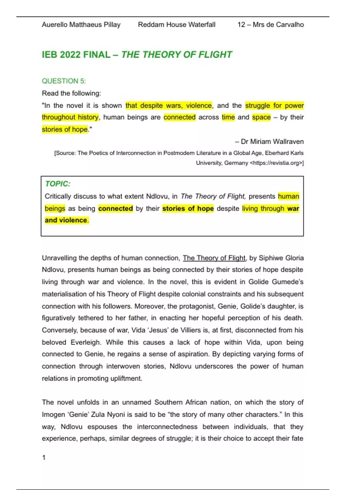 Critically discuss to what extent Ndlovu, in The Theory of Flight, presents human