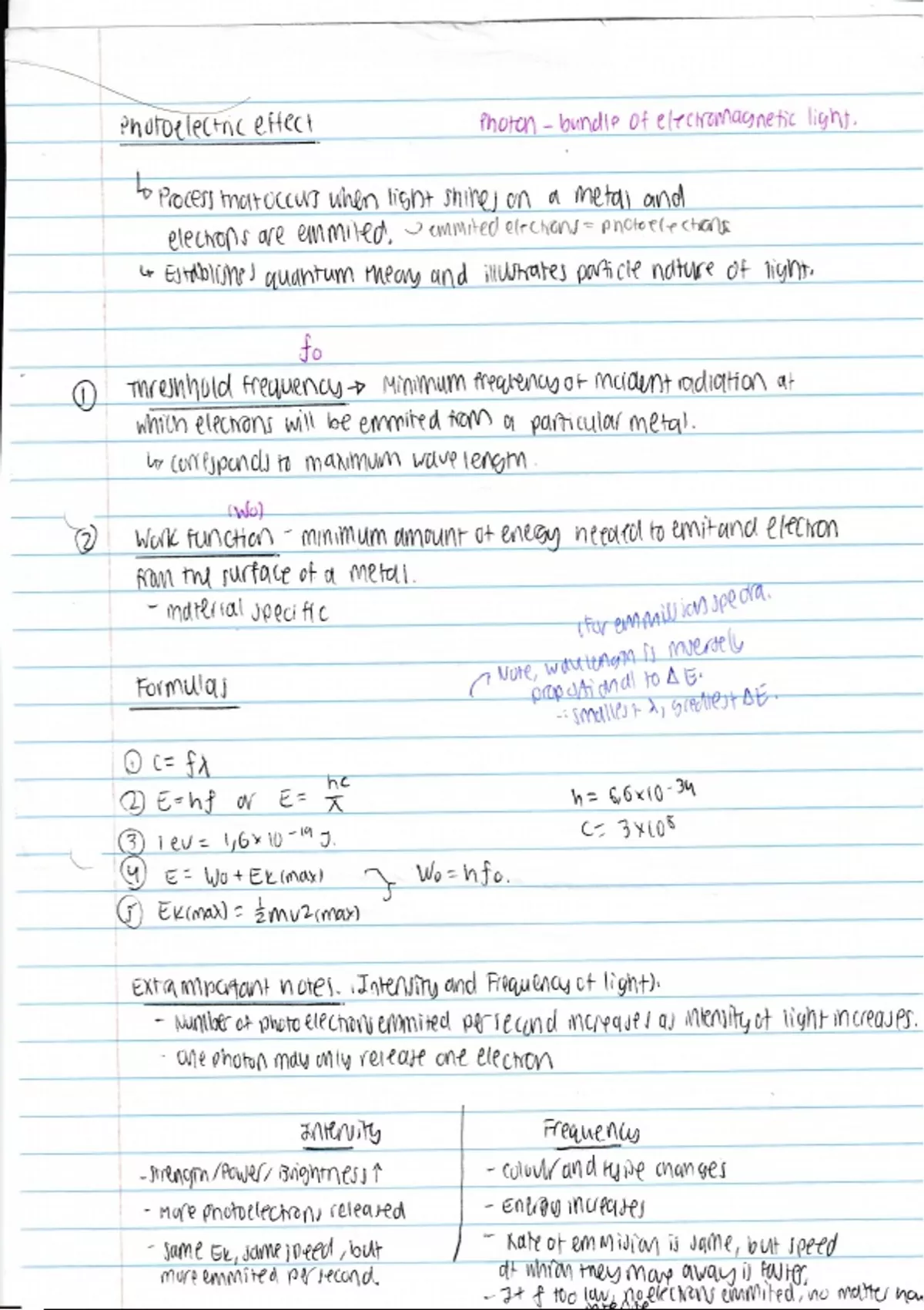 Have you ever struggled with Physics and wondered..."mmm, I wish I had shorter, easier notes for this impossible subject"? ?? Well...I present you with these shortened summaries for every single chapter and section for Physics. I used these notes to attain an 81% final average for Physics and these made the actual "Physics" section a whole lot easier for me. The following notes present all chapters in less than 10 pages and contain everything, from formulas to definitions to examples. Amazing notes are made by the people who struggle and spend hours dedicating their time to mastering a school subject. Just as I have put my blood, sweat and tears into my Physics grades...so have I done with these notes. Hopefully, they may benefit you and help boost your average, just as they have done for mine! This pack of notes contains Photoelectric effect. Some might find this section hard, but practice makes perfect. Use these notes to help you grasp the topics well!