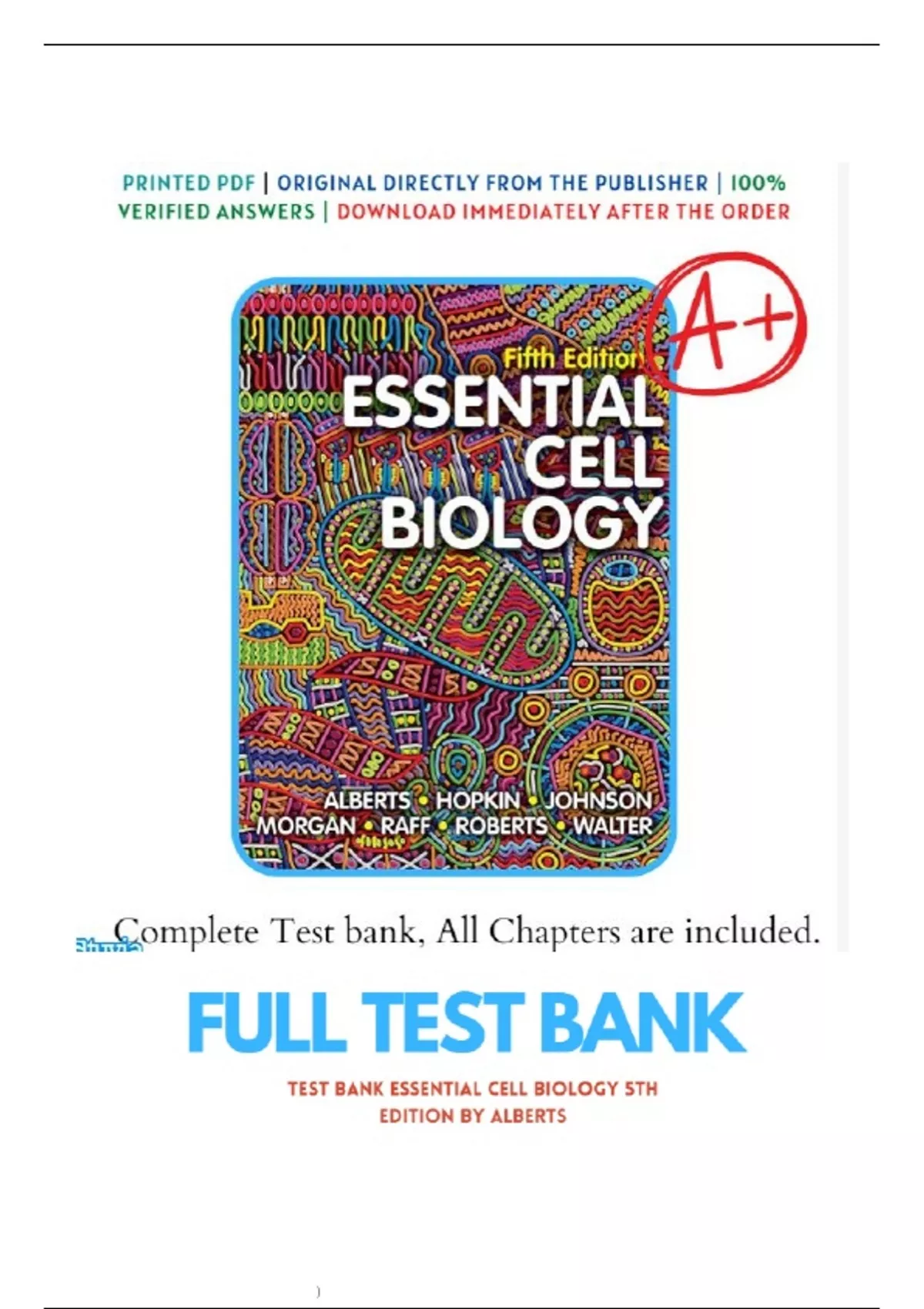Boost your cell biology knowledge with the Test Bank for Essential Cell Biology, 5th Edition by Alberts. Access instant, printable PDFs with authentic content directly from the publisher. Covering all 20 chapters, this resource offers comprehensive questions and answers to streamline your exam preparation. Simplify your journey to success as a nursing student and excel in cell biology with confidence