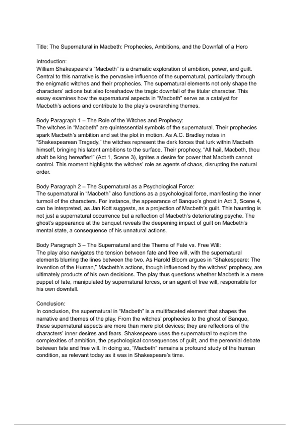 In conclusion, the supernatural in “Macbeth” is a multifaceted element that shapes the