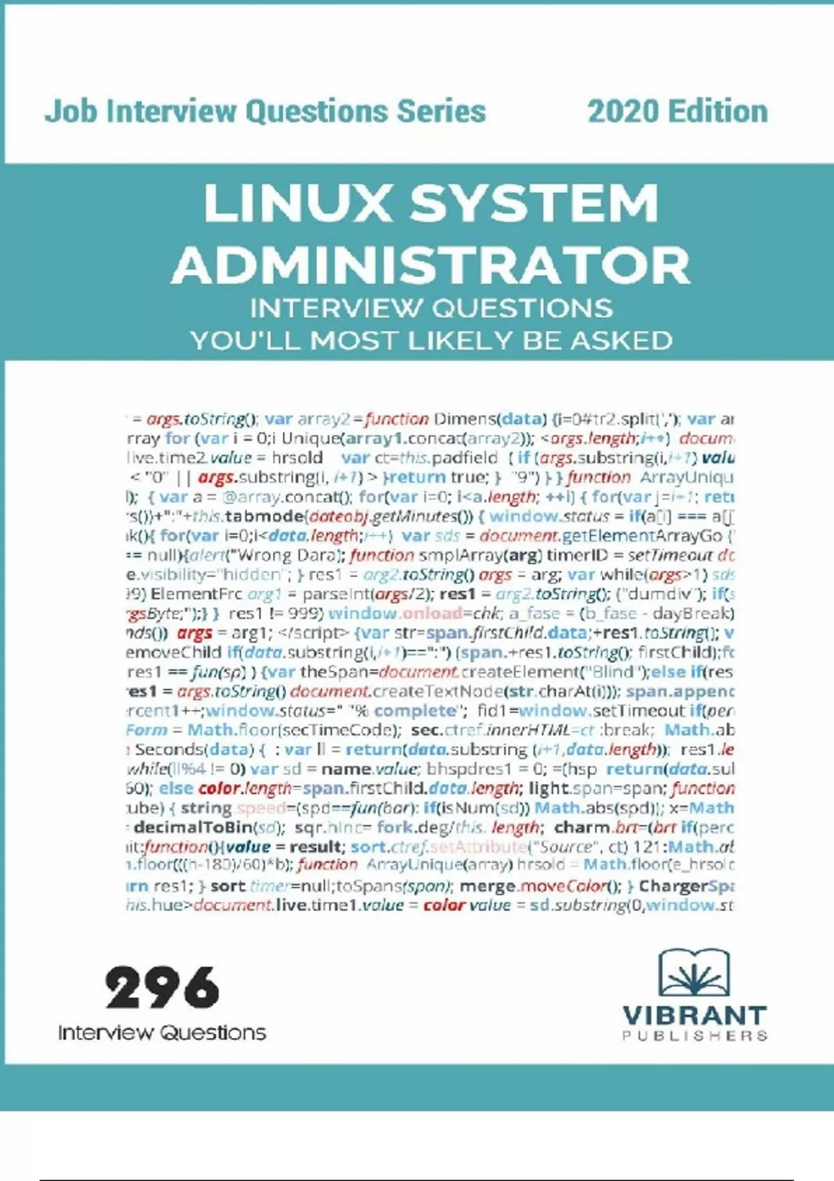 English | 2018 | ISBN: | 205 pages | True EPUB | 1.25 MB 221 Linux System Administrator Interview Questions 75 HR Interview Questions Real life scenario-based questions Strategies to respond to interview questions 2 Aptitude Tests Linux System Administrator Interview Questions You'll Most Likely Be Asked is a perfect companion to stand ahead above the rest in today's competitive job market. Rather than going through comprehensive, textbook-sized reference guides, this book includes only the information required immediately for job search to build an IT career. This book puts the interviewee in the driver's seat and helps them steer their way to impress the interviewer.