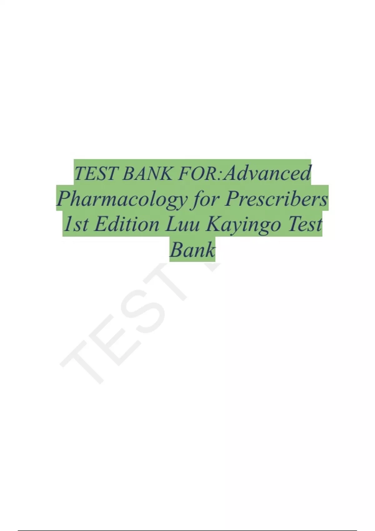 , Advanced Pharmacology for Prescribers 1st Edition Luu Kayingo Test Bank