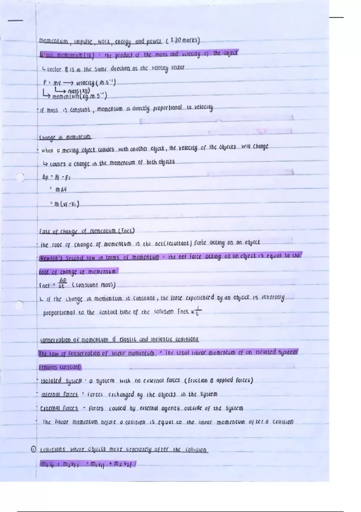 Summary Momentum, impulse, work, energy and power grade 12 IEB notes