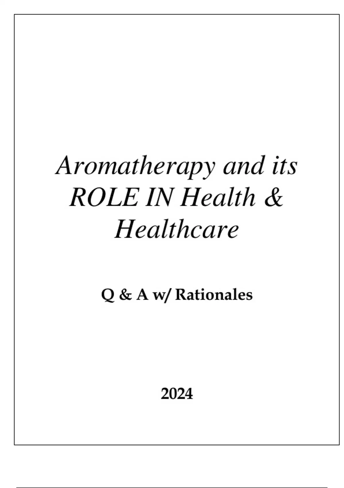 AROMATHERAPY AND ITS ROLE IN HEALTHCARE & HEALTHCARE MOD 1 QUIZ Q & A
