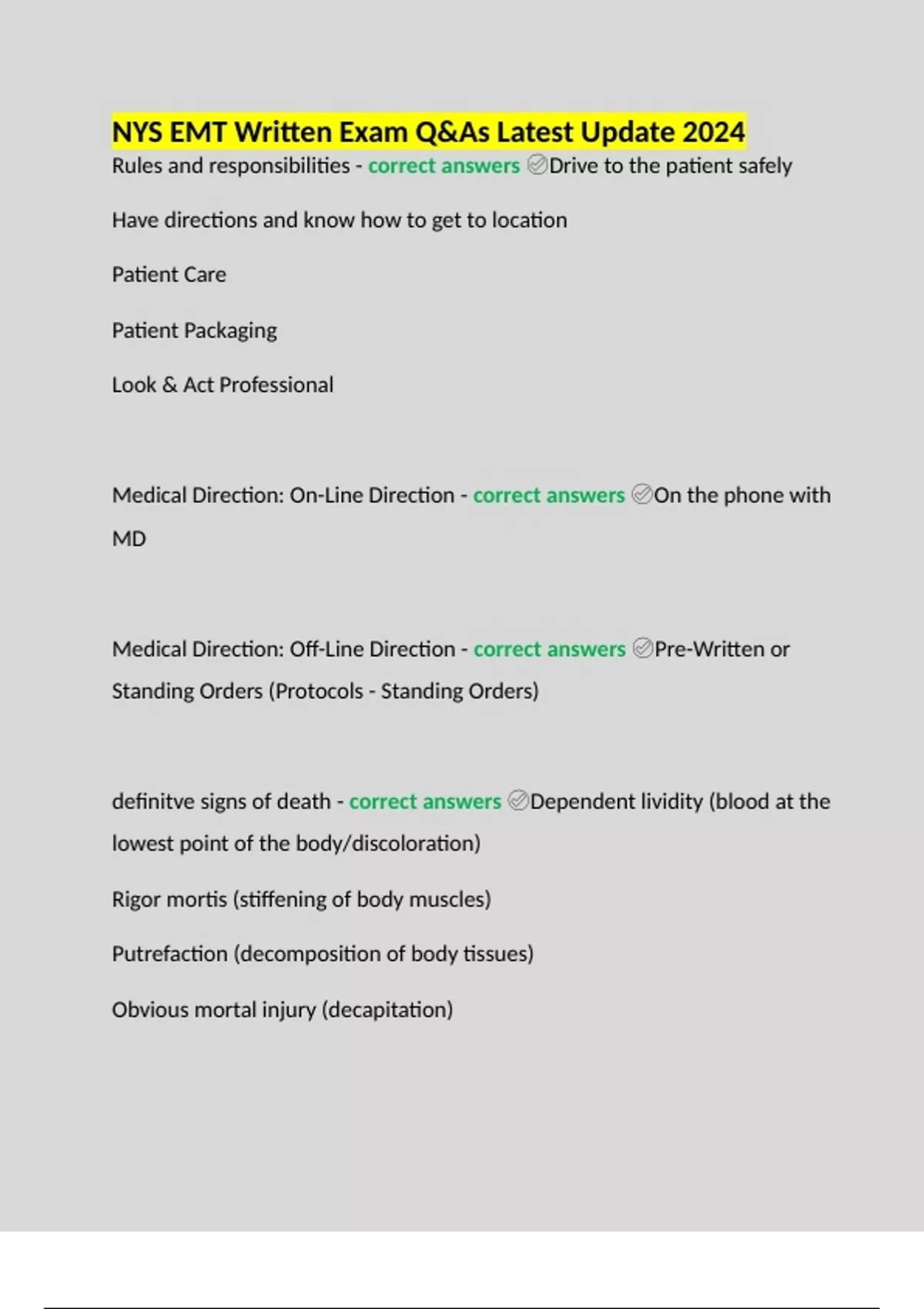 Public Health Law 800 - correct answers ✅EMT Cannot be held liable unless