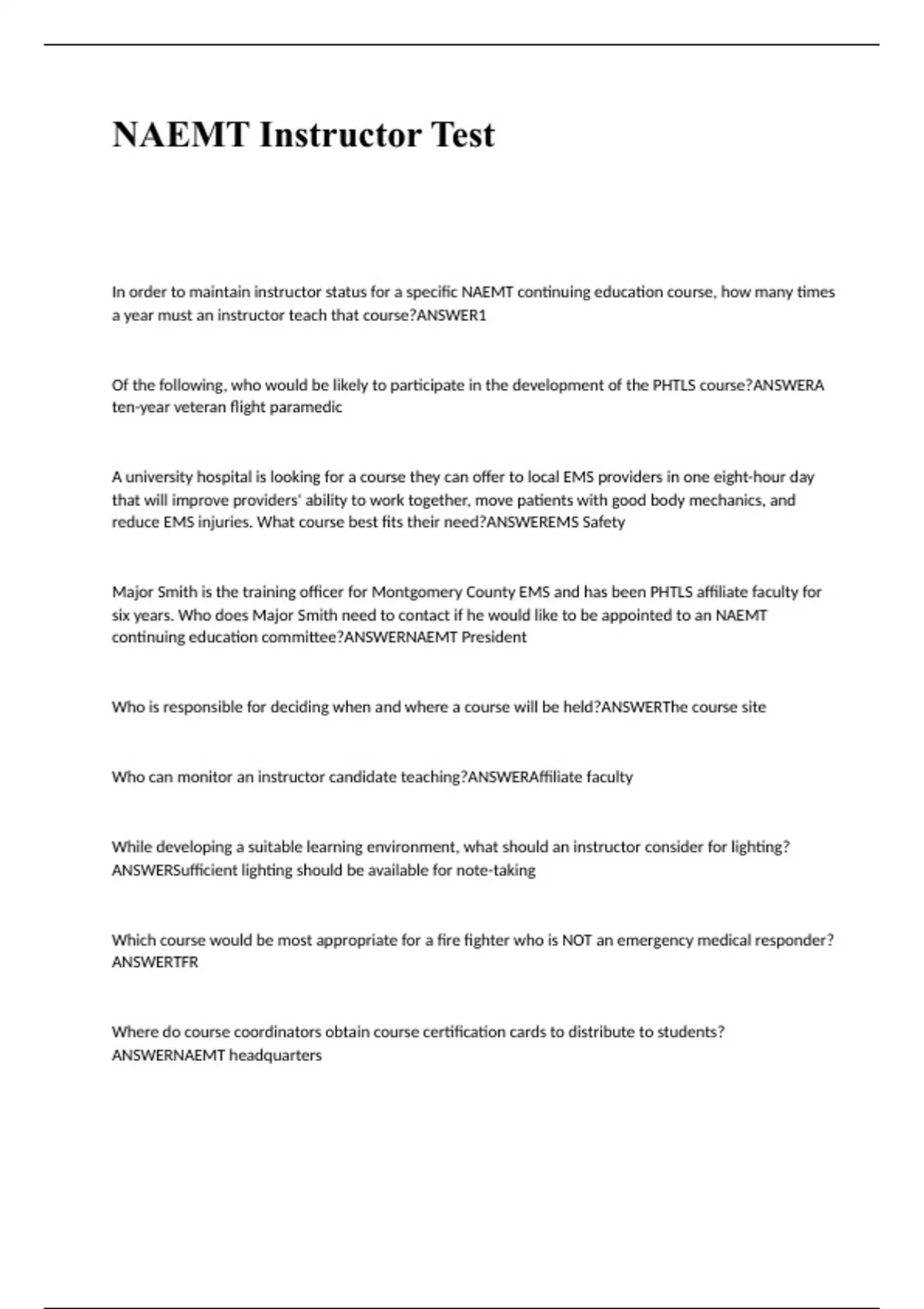 NAEMT Instructor Test Questions and Answers 2024