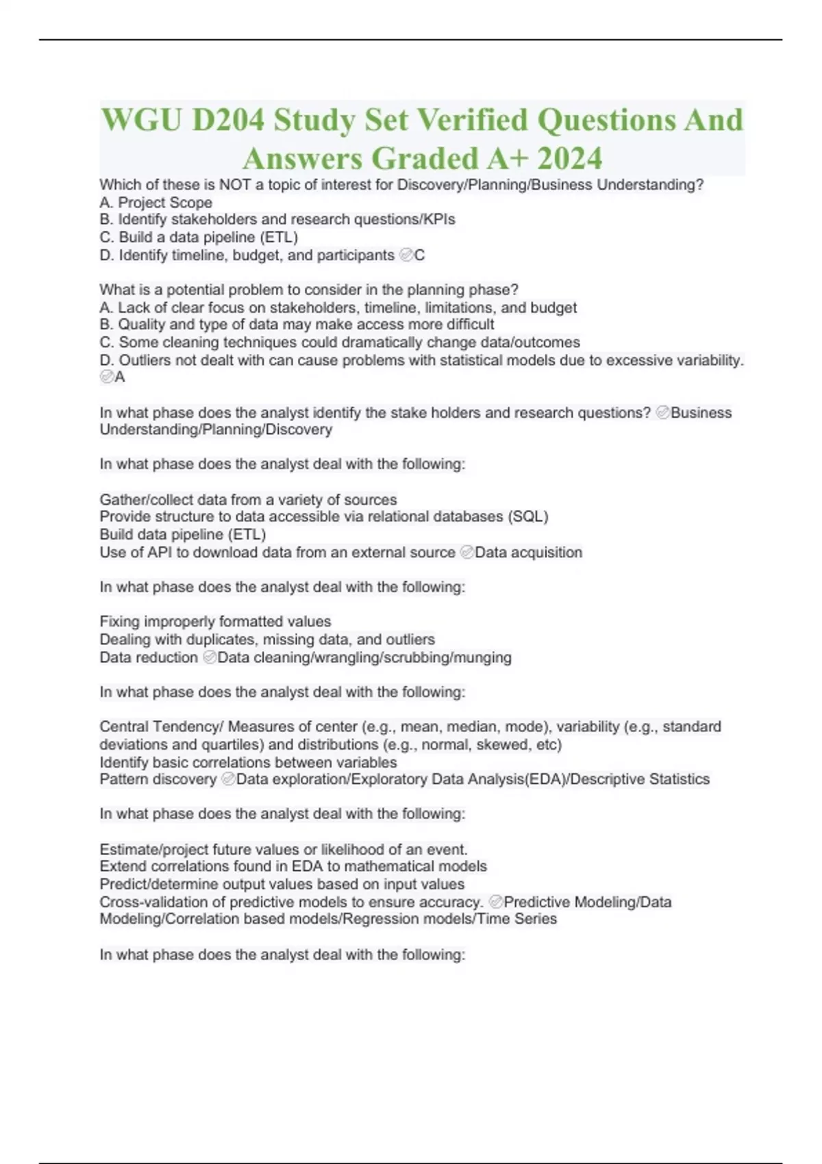 WGU D204 Study Set Verified Questions And Answers Graded A+ 2024