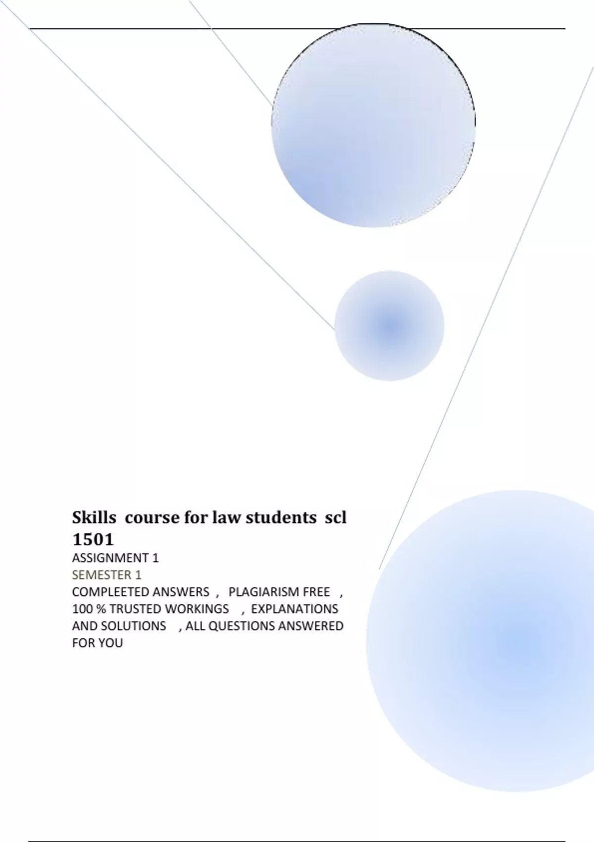 SCL: ASSESSMENT 1 QUESTION 1 Explain the concept ‘law” and thereby show how it is different from other social rules or norms. (4) Answers The concept of "law" refers to a set of rules and regulations created and enforced by a governing authority, such as a government or legal system, to regulate and govern the behave.....