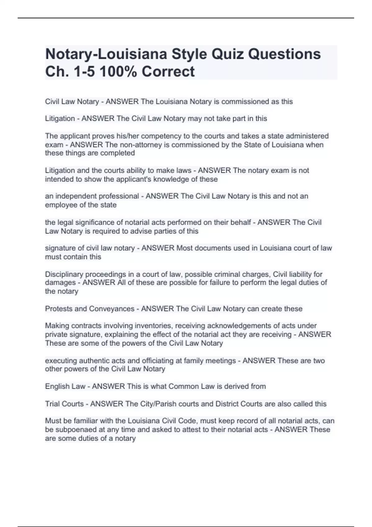 Notary-Louisiana Style Quiz Questions Ch. 1-5 100% Correct