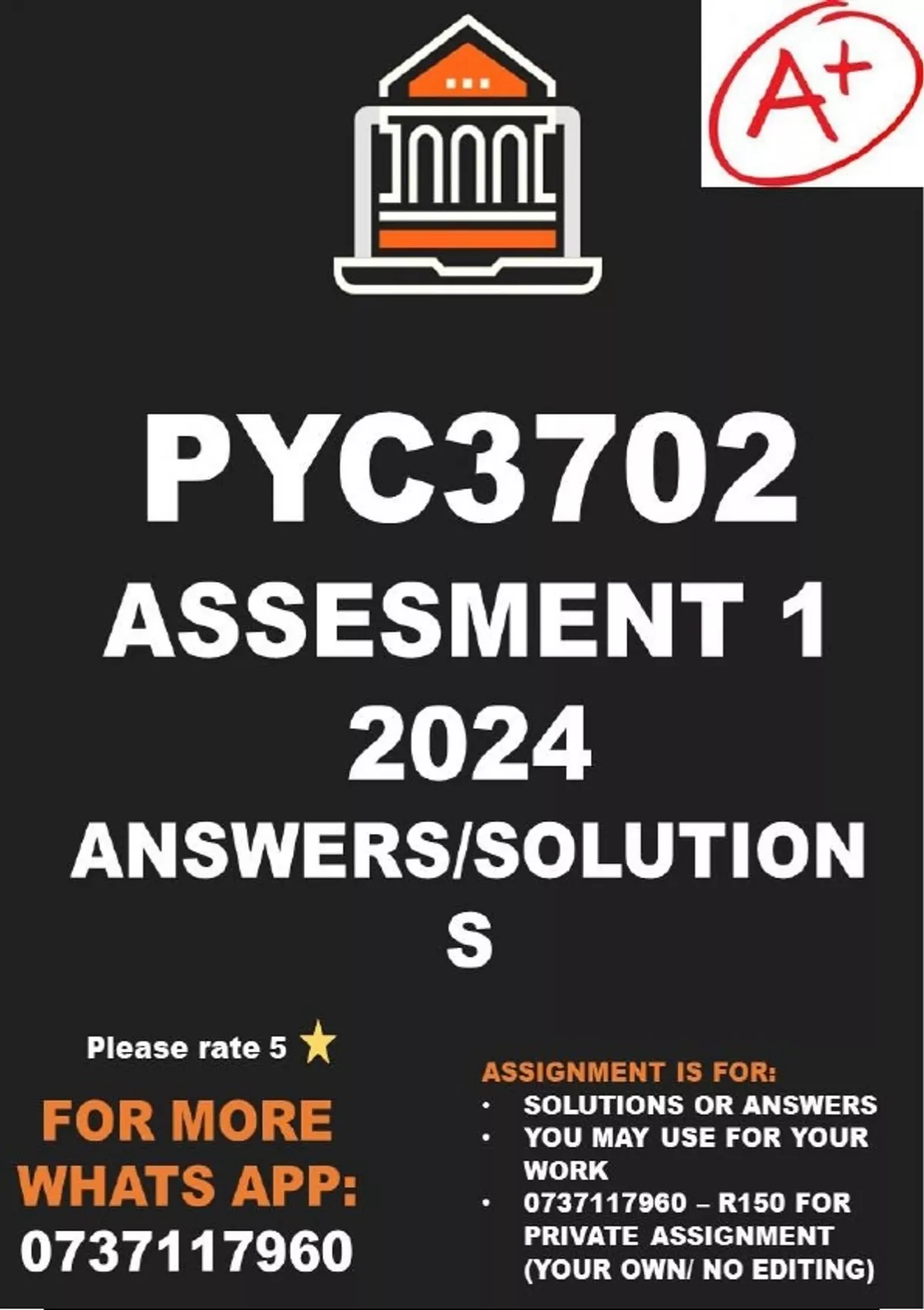 PVL3702 Assignment 1 2024 (solutions) ASSIGNMENT 01 QUESTION: Jack is a property developer who is well known for building residential developments. He recently built cluster homes in an upmarket suburb in Cape Town. All the cluster homes are built with the same size and layout, and they only differ with the positioning of each cluster in the complex. This development is brand new, and Jack appoints Sandy as his estate agent to market the sale of the cluster homes. Sandy shows Gloria a beautiful cluster home in the complex, which is next to the guardhouse at the entrance of the complex. Gloria immediately falls in love with this cluster home and a few days later she signs the offer to purchase document presented to her by Sandy, who completed all the relevant details on the document relating to the description of the property. The document is later also signed by Jack as the seller. However, it subsequently turns out that the cluster home referred to in the signed document is not the one that Gloria viewed and fell in love with. The one she signed for and the one she viewed are different properties. In fact, the cluster home she signed for is right at the back of the complex, which is not in the best position in the complex. Jack is of the view that a legally binding contract was concluded with Gloria, in accordance with the written signed document, for the cluster home described in this document. Gloria approaches you for legal advice as she thought that she was signing for the cluster home that was next to the guardhouse at the entrance of the complex. Apply the will theory and the iustus error doctrine and advise Gloria whether she concluded a legally binding contract with Jack, based on the written document that they both signed, for the cluster home described in this document. Discuss fully and refer to case law in your answer. Do not apply the Consumer Protection Act 68 of 2008. [10]