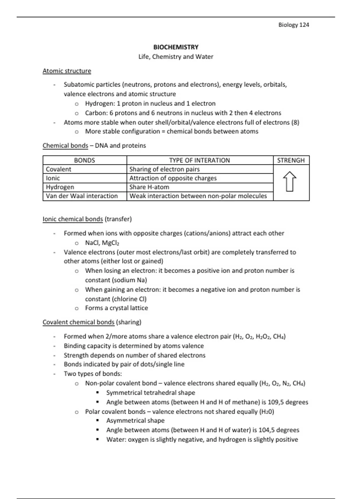 Chemical bonds – DNA and proteins