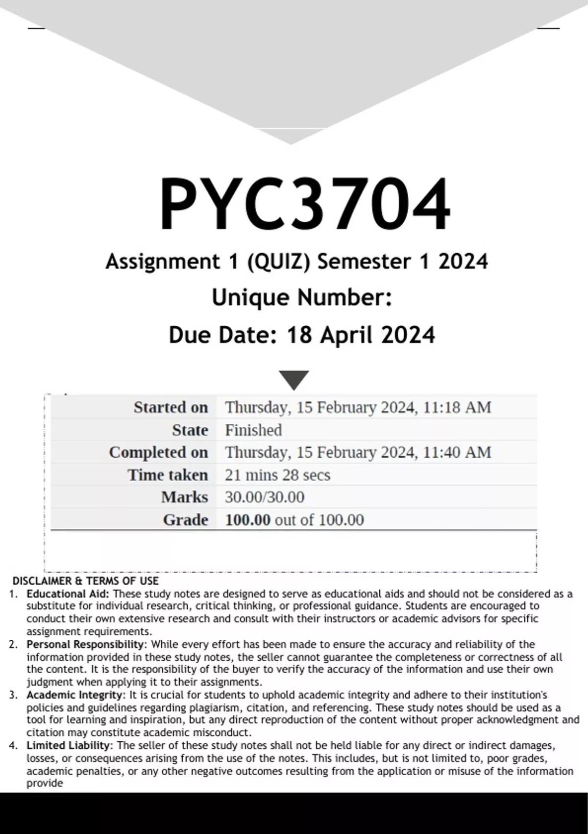 4. Limited Liability: The seller of these study notes shall not be held liable for any direct or indirect damages,